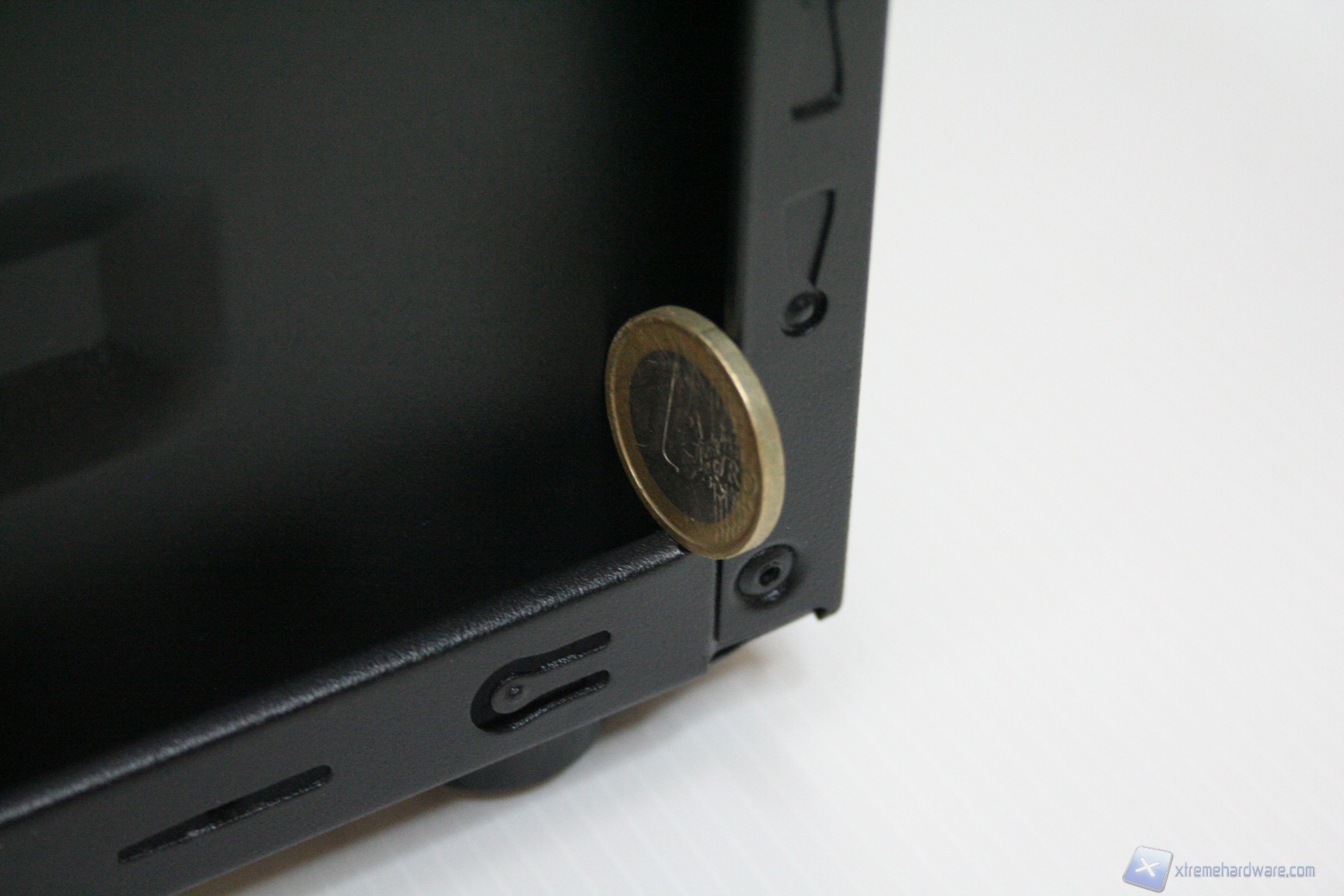 Una volta rimossa la scomoda paratia laterale, possiamo notare fin da subito che sebbene sia una soluzione economica, nulla è stato lasciato al caso e presenta una configurazione moderna. Abbiamo apprezzato il fatto che sulla carta non supporta schede madri E-ATX, mentre in realtà abbiamo potuto installare una Rampage II Extreme, rinunciando soltanto ai fori per il passaggio dei cavi. E’ spazioso quanto basta per un potente sistema e permetterà persino l’integrazione di sistemi a liquido dalla media potenza. Sorge spontanea una domanda: cosa si può volere di più da un cabinet tanto economico?