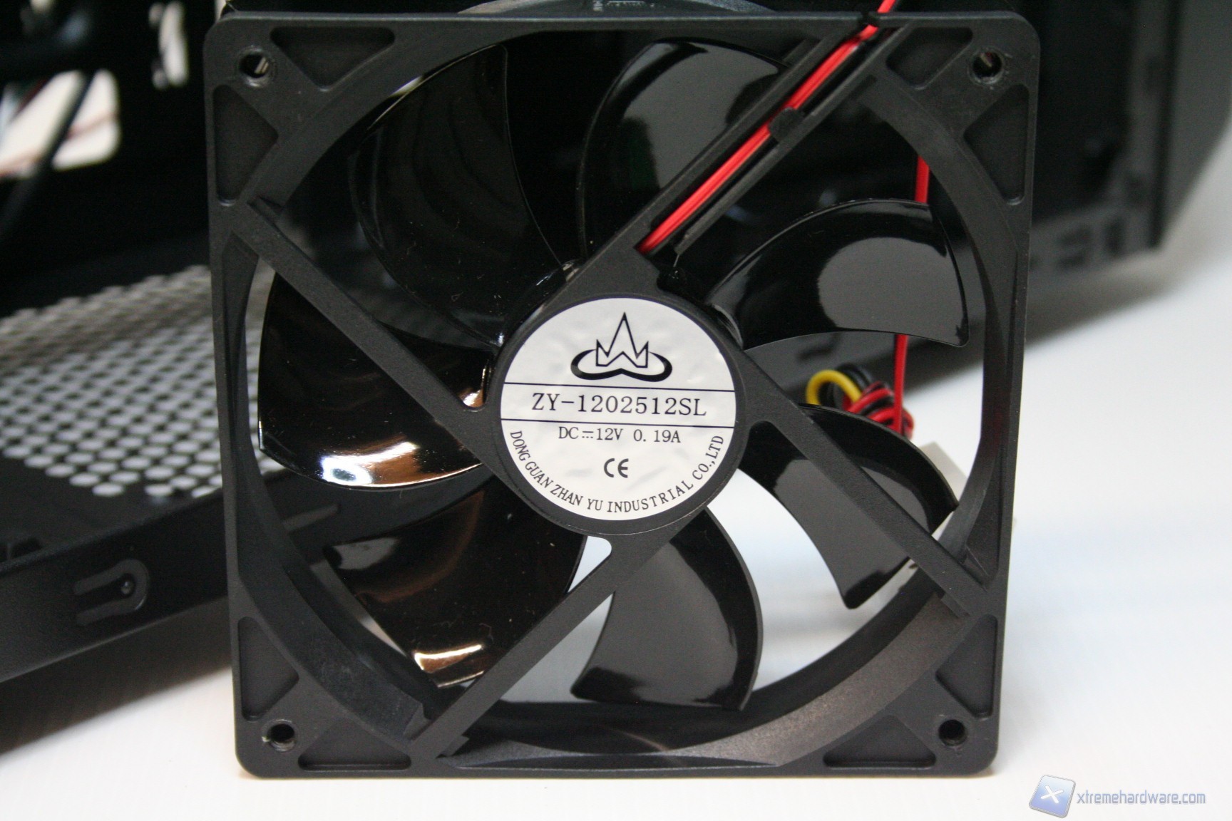 L’Enermax Ostrog giunto in redazione è equipaggiato con due ventole da 120mm e, anche se non sono presenti selettori di velocità, sono comunque silenziose. Forse sarebbe stato opportuno permettere l’installazione di modelli da 140mm, che ormai stanno diventando lo standard. Non sono forniti dati di targa per le ventole fornite ma presumiamo che si attestino indicativamente sui 35-40CFM. Il bilanciamento tra immissione ed espulsione, unito alla generale assenza di altre ventole, porterà a qualche fenomeno di ristagno dell’aria calda, ed al fenomeno della pressione negativa all’interno del case, il che implicherà che entrerà dell’aria dalle fessure laterali, frontali, inferiori e posteriori, anche se molte aperture presentano dei filtri, al fine di limitare l’ingresso della polvere.