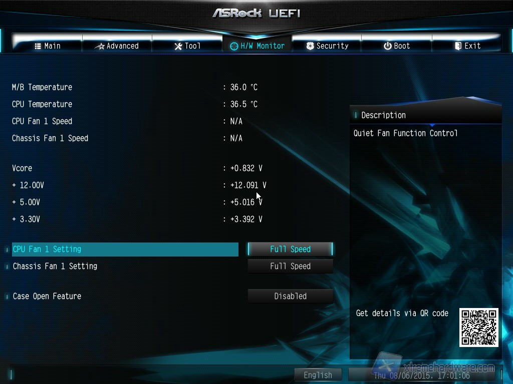 Temperature e voltaggi sono monitorati costantemente e visualizzabili in questo menù.