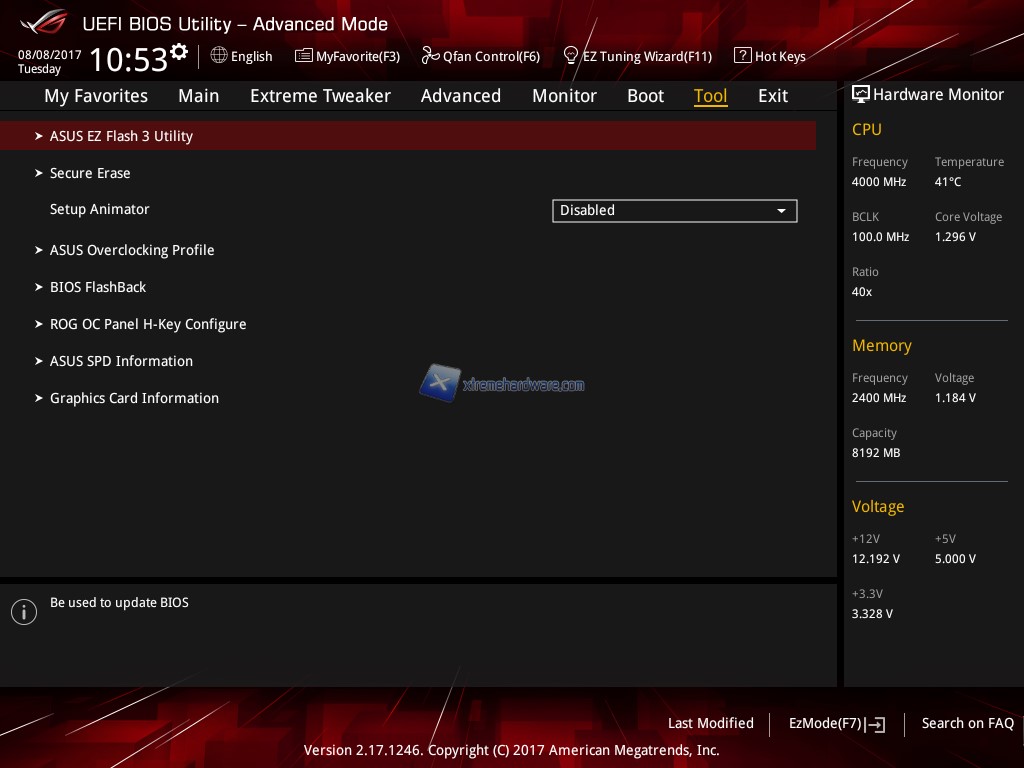 In ‘’Tool’’ troviamo i classici strumenti che ci mette a disposizione ASUS per flashare il BIOS ad una versione più recente, controllare i valori dei moduli RAM installati e molto altro ancora.