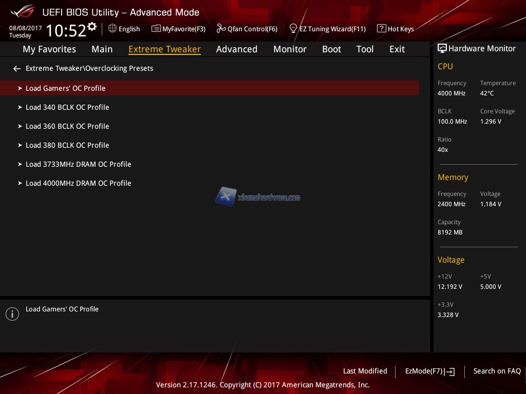 Passiamo al BIOS della ASUS ROG STRIX Maximus IX Extreme. Come sappiamo ASUS è detentrice tutt’oggi di uno dei più completi e funzionali BIOS in circolazione. Ricco di numerose funzionalità e voci che permette una minuziosa personalizzazione sia per utilizzo classico sia per Overclock. Con la nuova serie di schede madri Z270 non è cambiato molto a partire dall’interfaccia.